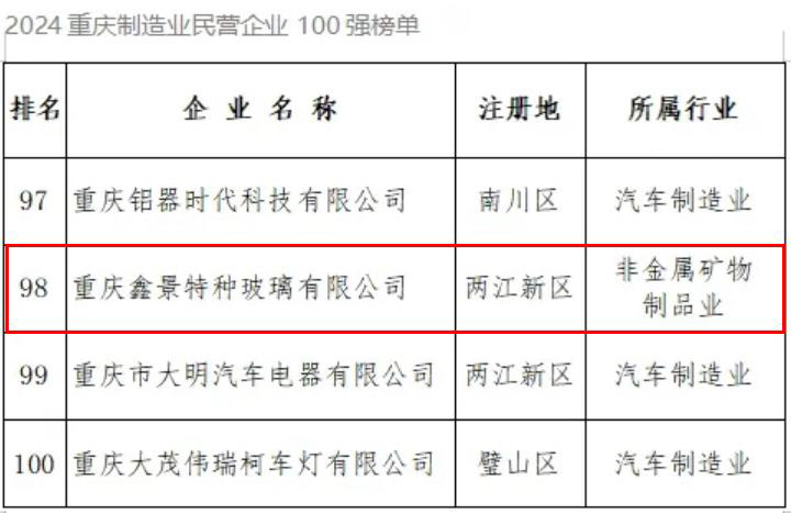 重慶制造業(yè)百強企業(yè)是地區(qū)制造企業(yè)的標桿和推動經(jīng)濟發(fā)展的中流砥柱,也是窺見制造業(yè)轉(zhuǎn)型發(fā)展的“風向標”。公司十余年堅持創(chuàng)新引領的發(fā)展道路,專注高端特種玻璃新材料領域的研發(fā)與應用,實現(xiàn)了關鍵技術突破,產(chǎn)品贏得了市場的青睞。